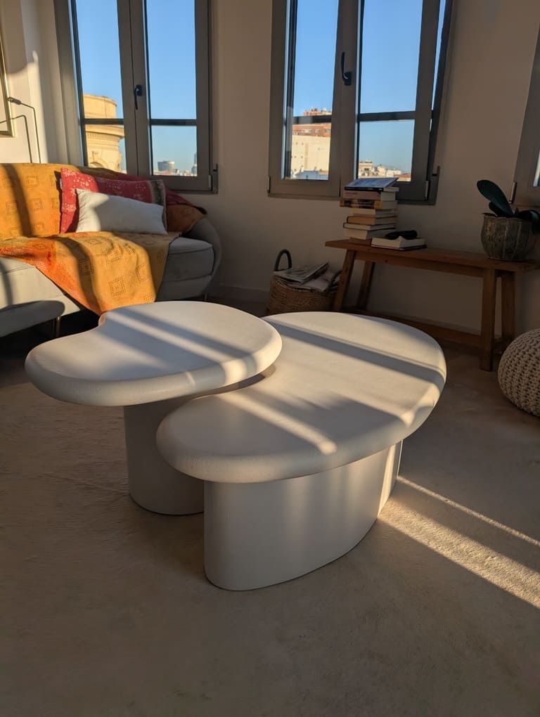 En Inspiraciones te abrimos la puerta a casas reales, con vidas reales, donde nuestras mesas de microcemento forman parte del día a día. Aquí no hay sets de fotografía perfectos, sino salones con libros abiertos, cocinas con desayuno a medias y rincones que cuentan historias.